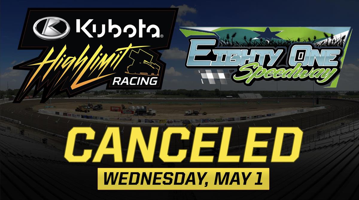 PARK CITY, KS (April 30, 2024) – With the rain already received this week and considering the severity of weather moving into the area tomorrow, 81 Speedway and Kubota High Limit Racing officials have agreed to cancel Wednesday's Midweek Money Series event in the interest of teams and fans after consulting with local meteorologists.
