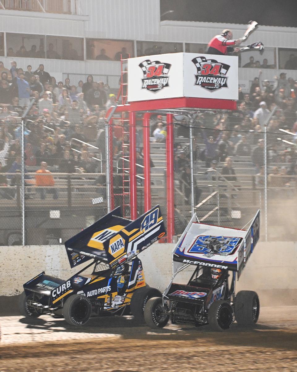 The difference was twelve, one-thousandths of a second (0.012) on Friday at 34 Raceway as Brad Sweet and James McFadden wowed the Iowa fans with the closest finish in Kubota High Limit Racing history.
