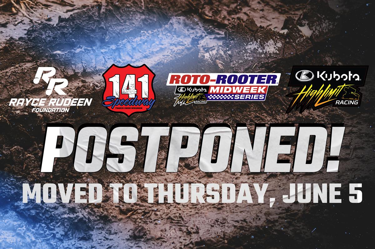 MARIBEL, WI (June 3, 2025) – Tuesday's originally scheduled Rayce Rudeen Foundation Race at 141 Speedway has been postponed with thunderstorms sweeping through the region this afternoon and evening.