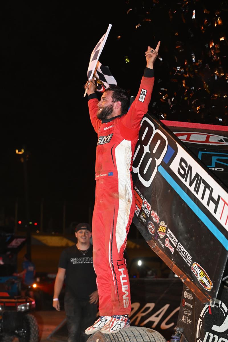 The Minden, NV native clicked off Brad Sweet on Lap 20 and then wasted no time at all flying by Giovanni Scelzi, taking the lead for good on Lap 22. The 35-lap main event was far from other, though, as a hard-charging Brady Bacon pressured Thorson all the way through traffic until he crossed the finish line with a 0.933-second margin of victory.