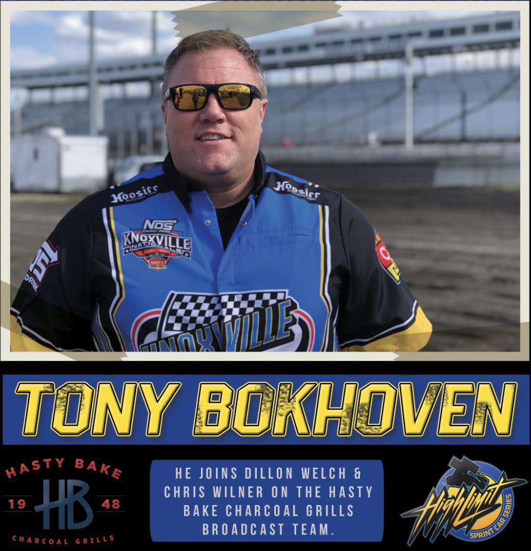 Tony Bokhoven, one of the most iconic voices in Sprint Car Racing, will join the Hasty Bake Charcoal Grills Broadcast Booth to announce the remaining nine High Limit Sprint Car Series events in 2022 - beginning with Kokomo Speedway this Wednesday, May 3.